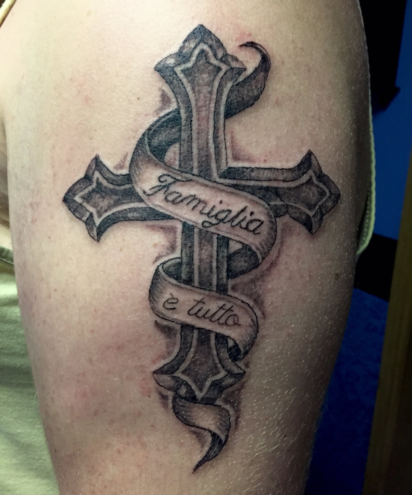 Zebra Tattooz On Twitter Cross With Family Is Everything Done On The Upper Arm By Z Today Zebratattooz Zebratattoozstreetsboro Tattoo Freshtattoo Newtattoo Cross Crosstattoo Family Familytattoo Meaningfultattoo Blacktattoo